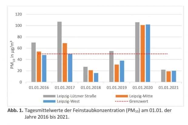 „Allerdings ist auch zu berücksichtigen, dass die gemessene PM10-Konzentrationen jeweils von der Intensität und Dauer des Abbrennens von Pyrotechnik in unmittelbarer Nähe zur Messstation maßgeblich beeinflusst wird. Derartige Informationen liegen i. d. R. nicht vor, wären aber zur weiteren Interpretation hilfreich und könnten Aufschluss darüber geben, warum bspw. an der Messstation Leipzig – Lützner Straße der PM10-Stundenmittelwert am 01.01.2018 um 02:00 Uhr geringer ist, als der zeitgleiche Wert am 01.01.2021“, so das Umweltdezernat. Denn in der Lützner Straße wird ja eher das „Normalfeuerwerk“ der Leipziger in ihrem Wohngebiet gemessen.