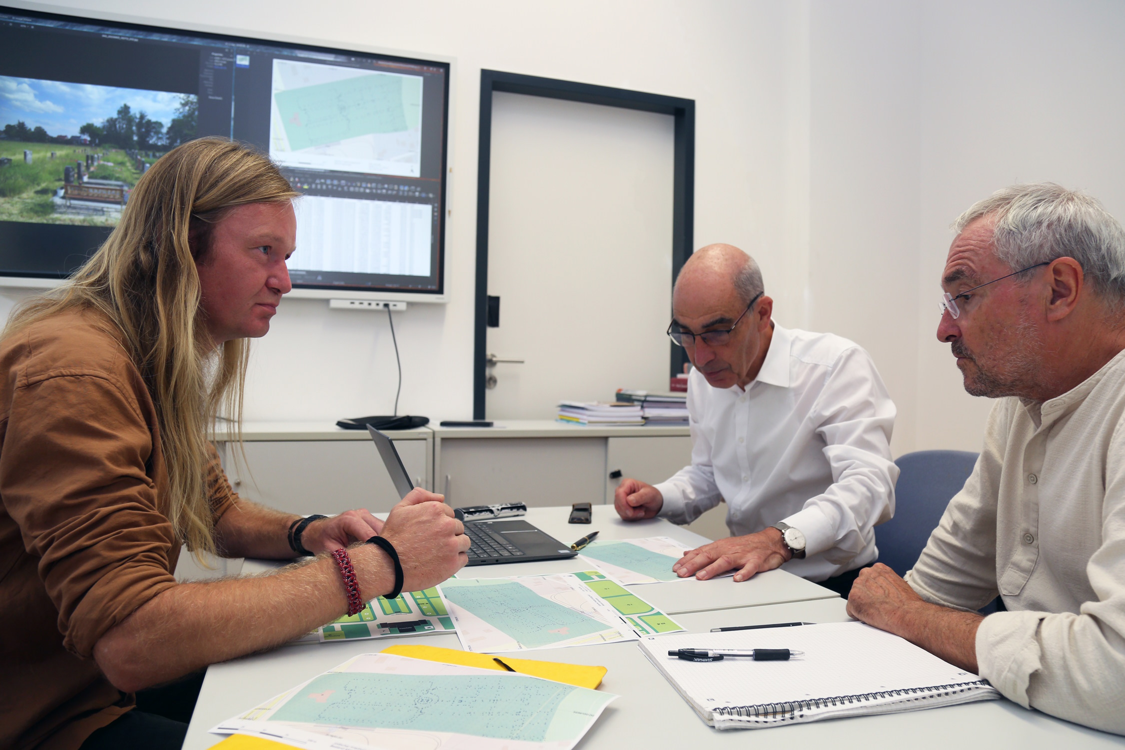 Mittels Bodenradarmessungen ist es den HTWK-Forschern gelungen, einen Blick in den Untergrund zu werfen, ohne den Boden umzuschichten. Die Geräte geben Auskunft über die oberflächennahe Struktur des Bodens, woraus geschlussfolgert werden kann, ob sich an den vermuteten Stellen tatsächlich Urnen oder Gebeine befinden könnten. Nach dem Einmessen und den geophysikalischen Untersuchungen erarbeitet Architekt Ronald Scherzer-Heidenberger, HTWK-Professor für Regionalplanung und Städtebau, nun Pläne für eine Um- und Neugestaltung des Neuen Israelitischen Friedhofs.