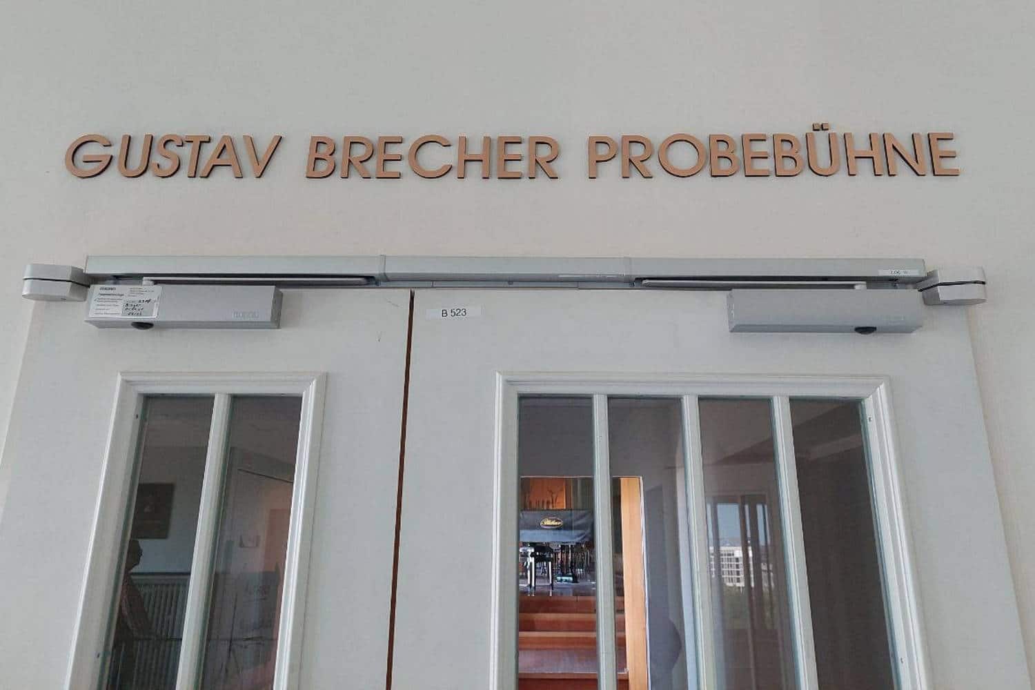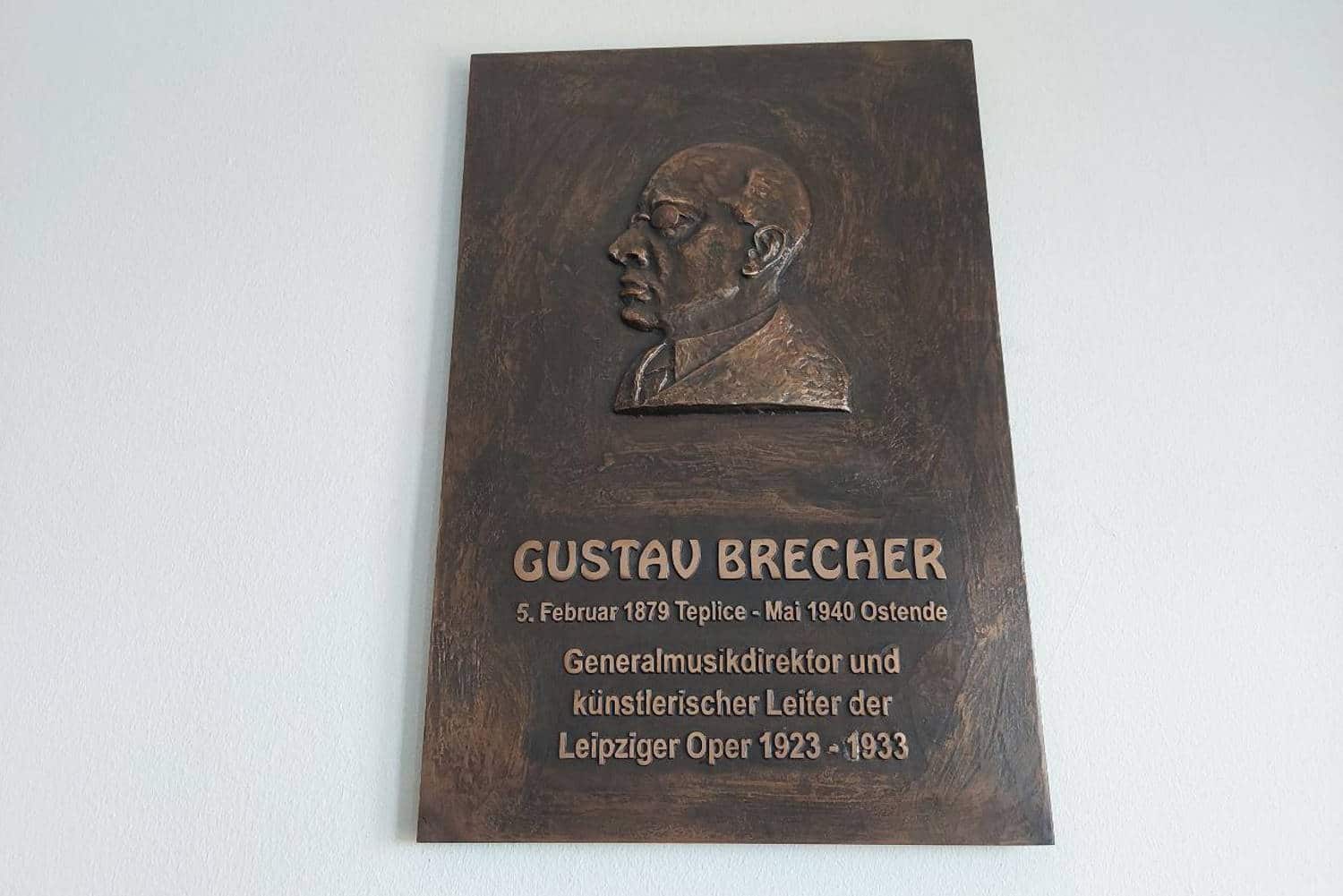 Doch heute erinnert auch ein Relief vor der Probenbühne im Opernhaus an den einst deutschlandweit geachteten Intendanten. Die Probenbühne selbst bekam den Namen Gustav-Brecher-Bühne, sodass der Name auch den Künstler/-innen und Mitarbeiter/-innen im Haus wieder gegenwärtig ist.