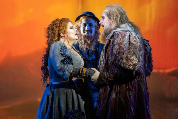 Konzeptionell bleibt der Regisseur Dijkema dem traditionellen Erzähltheater verbunden. Visuell verortet er die Oper in ihrer Entstehungszeit. Hingucker gibt es viele, was neben dem Bühnenbild der Arbeit von Kostümdesignerin Jula Reindell und der Maske geschuldet ist. Während der Ouvertüre und zu Beginn des ersten Aktes deuten Lichteffekte, Drehbühne und Podesterie die Dynamik des heftigen Sturms an, in dem sich Dalands Schiff befindet. Randall Jakobsh lässt als gealterter Seebär mit Rauschbart keine Wünsche offen. Der Holländer wird zusammen mit drei großen Pottwalen ans Land gespült (besser gesagt: auf der Drehbühne hereingefahren).