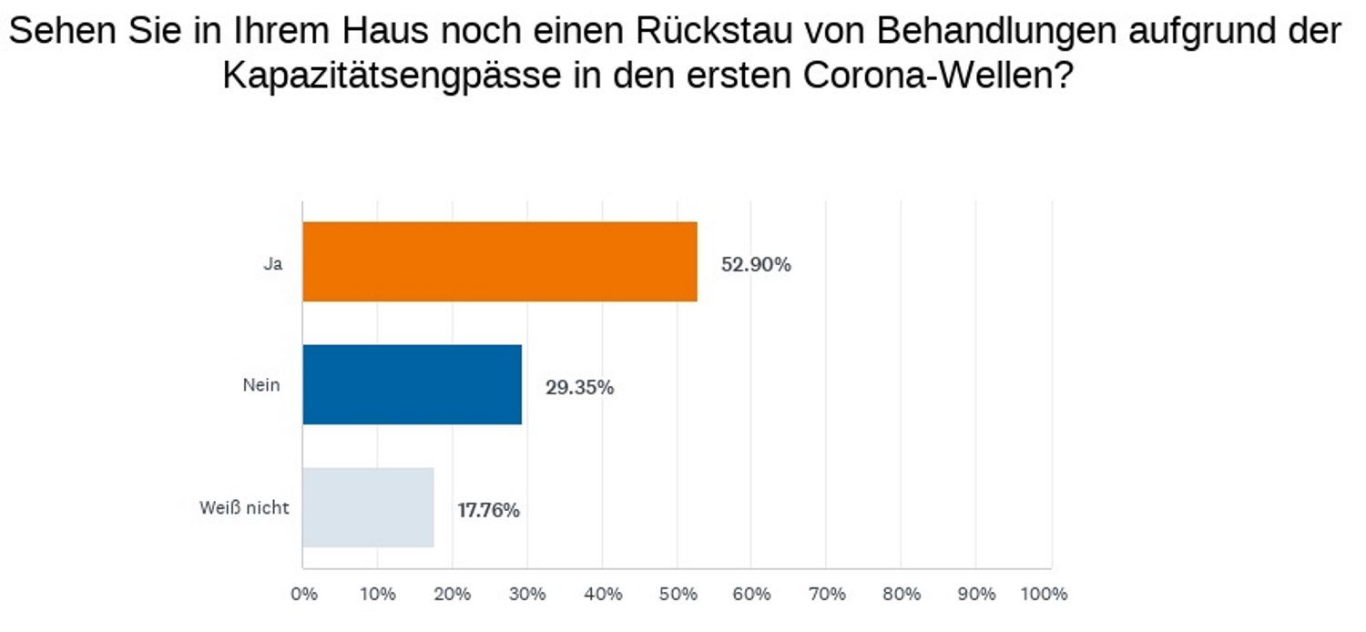 Corona verengt das Nadelöhr der Akutbehandlung: 35 Prozent der Befragten gibt an, dass es in ihrem Haus durch COVID-19 bedingte Situationen gibt, in denen sie die Behandlung von Notfallpatienten im Sinne einer Triage priorisieren mussten.