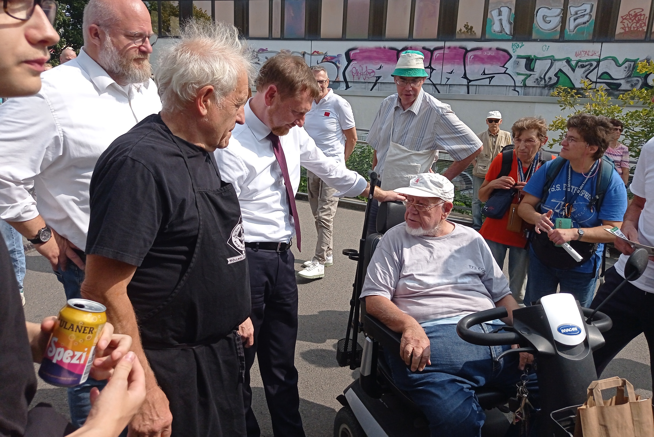 Die Bürgerinnen und Bürger hatten viele Fragen, wollten seine Hand schütteln und Selfies machen. Am Ende nahm Herr Kretschmer auch noch höchstpersönlich die Suppenkelle in die Hand, um die gesponserte Soljanka unters Volk zu bringen.