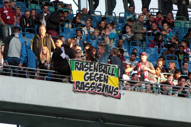 In der Vergangenheit verfolgte RB Leipzig keine klare Linie bei der Genehmigung von Spruchbändern mit gesellschaftspolitischen Inhalten. Banner, die sich gegen Gewalt, Rassismus und Homophobie wendeten, wurden ebenso genehmigt wie die Solidaritätsbekundung für einen schwedischen Ultra, der von rechten Schlägern lebensgefährlich verletzt worden war. Zudem unterstützte der Verein im vergangenen Spätsommer eine von Fans initiierte Aktion, die hunderten geflüchteten Menschen aus verschiedenen Leipziger Unterkünften einen kostenlosen Stadionbesuch ermöglichte.