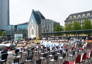 „Leere Stühle“ auch in Leipzig: Geisterhaftes „Festmahl“ auf dem Augustusplatz