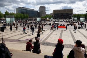 Traditionell demonstrieren viele Linke am 1. Mai gegen Neonazis. Doch weil deren Demos wegen der Coronakrise ausfallen, können die Linken diesmal selbst in die Offensive gehen. Auf dem Augustusplatz folgten mehrere hundert Menschen dem Aufruf eines breiten Bündnisses. Später kam es auf dem Simsonplatz zu Wortgefechten mit Gegner/-innen der Corona-Schutzverordnung.