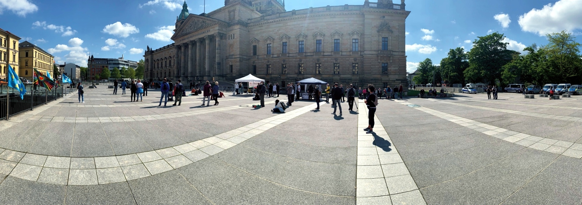 Eine überschaubare Zahl von etwa 60 Teilnehmenden war am Samstag dem Aufruf der „Querdenker“ gefolgt und hatte sich auf dem Simsonplatz vor dem Bundesverwaltungsgericht versammelt. Ã„hnlich wie zu Hochzeiten der Pegida-Bewegung spiegelten die Redebeiträge einmal mehr ein Potpourri aus Kapitalismuskritik, Verschwörungsmentalität und historischen Vergleichen wider – wobei für letztere das Wort „schief“ schon fast ein Euphemismus wäre.