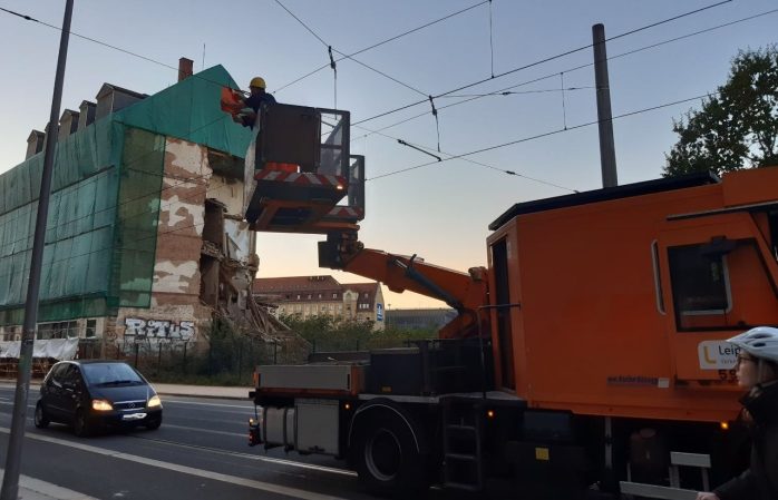 Am heutigen Nachmittag stürzte in der Rosa-Luxemburg-Straße ein Haus teilweise ein. Die Straße musste gesperrt, die Straßenbahnlinien umgeleitet werden. Verletzt wurde dabei niemand. Mehrere Expert/-innen waren vor Ort, um die Statik des Hauses zu überprüfen und Maßnahmen einzuleiten. Am Abend wurde die Sperrung vorerst wieder aufgehoben. Alle Straßenbahnlinien fahren wieder wie gewohnt.