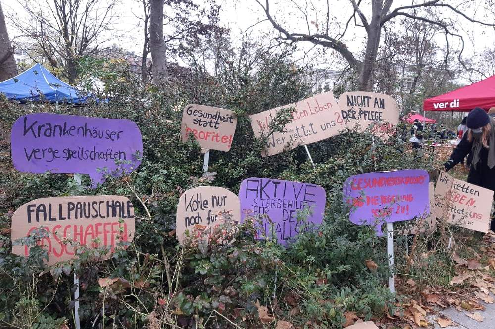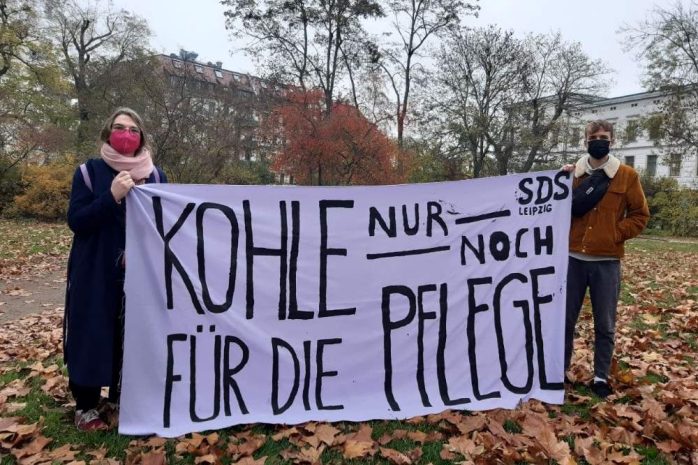 Vor Ort unterstützten mehrere Initiativen die Warnstreiks der Beschäftigten des Uniklinikums, unter anderem der Sozialistisch-Demokratische Studierendenverband (SDS), die Linksjugend Solid, das Pflegebündnis und die Leipziger Jusos.