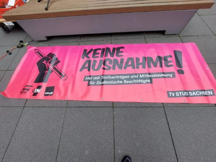 Die Initiativen forderten im Rahmen des Hochschulaktionstages heute unter anderem Tarifverträge für studentische Hilfskräfte, eine Lohnerhöhung von fünf Prozent, mehr Mittel für Lehrstellen, mehr Planbarkeit in der Lehre, eine Erneuerung des Wissenschaftszeitvertragsgesetzes und eine Absetzung des Lehrdeputats.