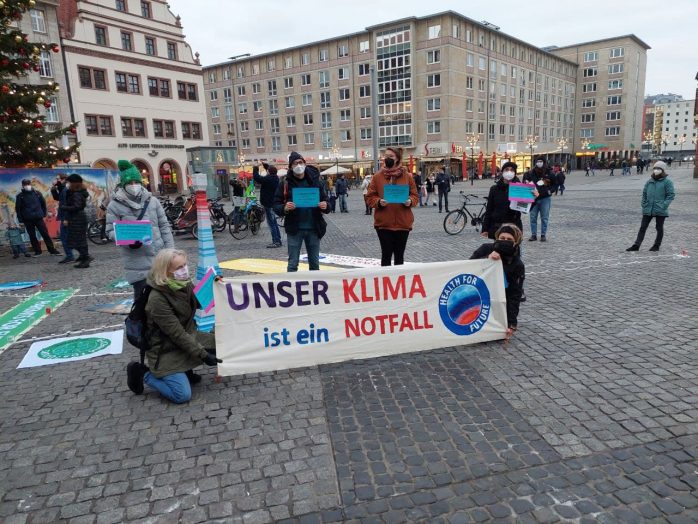 Zur Aktion am Samstag wurde durch Parents for Future Germany aufgerufen, die Kundgebungen in mehr als 20 Städten Deutschlands initiiert hatten. Wegen der COVID-19-Pandemie konnte die Versammlung in Leipzig nur ortsgebunden und mit höchstens 10 Personen stattfinden.