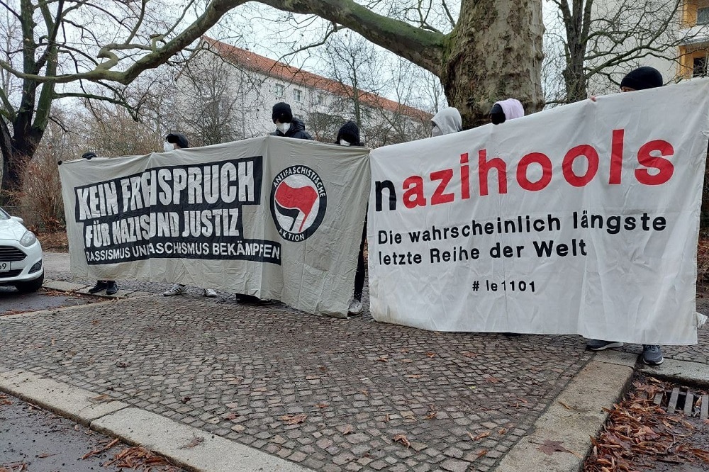 Über Hausdurchsuchungen beim angeklagten Justizbeamten oder gegen andere Angreifer von 2016 in Connewitz, die Hintergründe und Strukturen dahinter offenlegen könnten, sei hingegen nichts bekannt. Daher versammelten sich Team und Unterstützer/-innen von „Rassismus tötet“ am heutigen Dienstag zum Prozessauftakt vor dem Amtsgericht Leipzig.