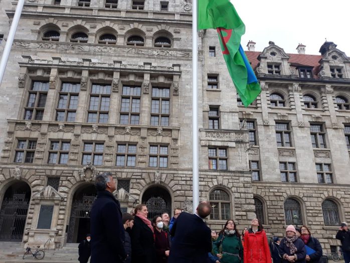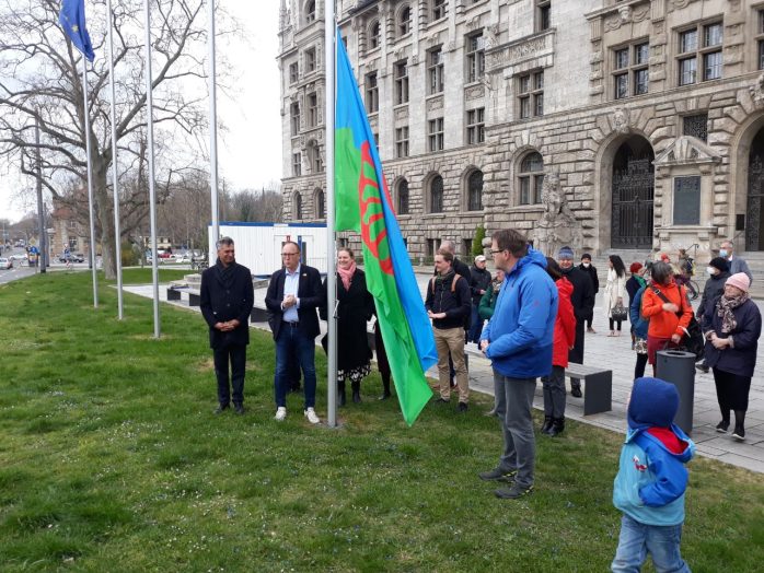 Am Freitagnachmittag fand dazu eine Veranstaltung vor dem Neuen Rathaus statt, bei der die Internationale Romaflagge gehisst wurde.
