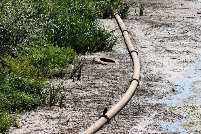 Wenn man dieser Tage am Elsterbecken die Augen öffnet, kann man zwei Phänomene gleichzeitig betrachten. Einerseits die Auswirkungen der anhaltenden Dürre auch in diesem Jahr, denn im Elsterbecken war heute so gut wie kein Wasser mehr.