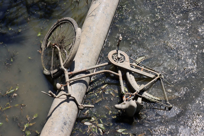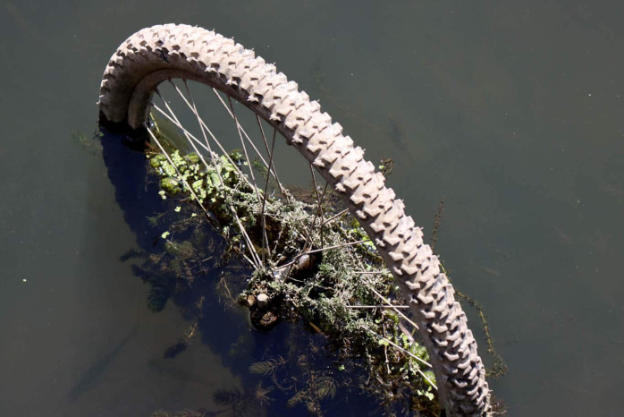 Elsterbecken: Extremes Niedrigwasser und Zivilisationsmüll in Leipzig