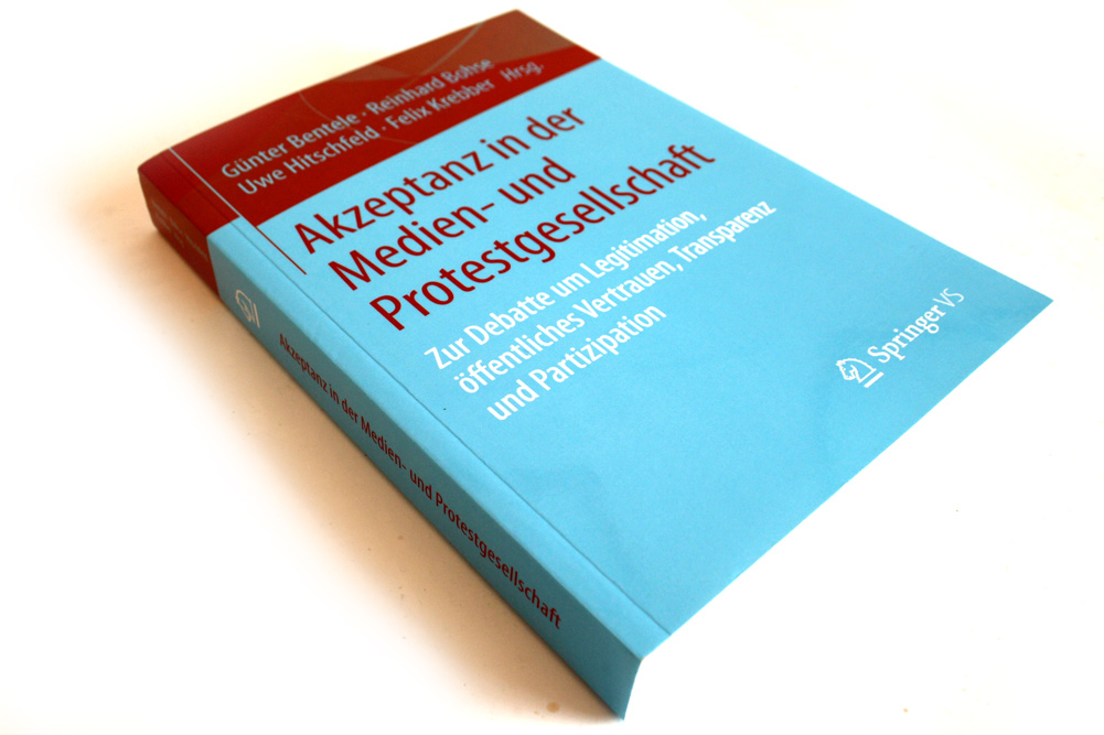 Günter Bentele, Reinhard Bohse, Uwe Hitschfeld, Felix Krebber (Hrsg.) “Akzeptanz in der Medien- und Protestgesellschaft“, Springer VS, Wiesbaden 2015, 29,99 Euro