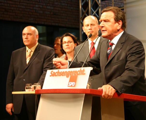 Was übrigens auch sämtliche Wahlen seit 2005 gezeigt haben: Wer wirtschaftsfreundliche Parteien wählen möchte, wählt nun einmal das Original und nicht eine im Pelz gewaschene SPD. Die SPD stürzte von ihren vorher typischen 35-Prozent-Wahlergebnissen auf 25 Prozent ab und kam seitdem nicht wieder hoch. Was sich 1999 mit dem Abgang von Oskar Lafontaine erst angedeutet hatte, wurde 2004 mit der Einführung von “Hartz IV” zum Fanal für die SPD: Sie verlor fast ihren kompletten linken Flügel. Die enttäuschten Genossen, die bis dahin für eine markante solidarische Position in der SPD gestanden hatten, traten reihenweise aus. Viele wechselten zur neu gegründeten (Wahl-)Alternative soziale Gerechtigkeit (ASG bzw. WASG). Und dort tauchte dann 2004 auch Oskar Lafontaine wieder auf.