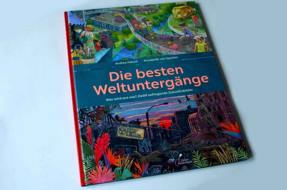 Und dabei ist es ein richtig liebes Buch und Andrea Paluch versucht gemeinsam mit der Grafikerin Annabelle von Sperber, die Kinder nicht allzu sehr zu erschrecken. Mancher Weltuntergang im Buch sieht deshalb auch wie keiner aus, obwohl er einer ist. Und ob es die Menschheit wohl nicht schaffen kann, so glimpflich davonzukommen, wie es die großen bunten Bilder einer möglichen Zukunft zeigen, ist zumindest fraglich. Irgendwie glaubt auch Andrea Paluch daran, dass der Mensch mit jeder Menge Technik auch die selbst gemachten Weltuntergänge meistern kann.