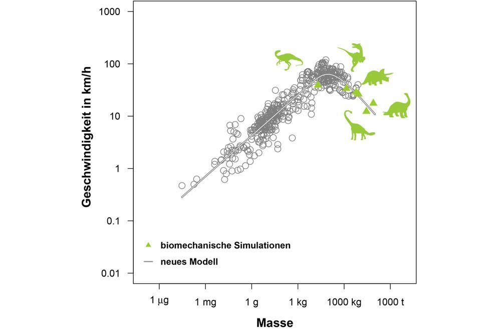 „Um zu testen, ob wir mit unserem Modell auch die Maximalgeschwindigkeit von bereits ausgestorbenen Tieren berechnen können, haben wir es auf Dinosaurier-Arten angewendet, deren Geschwindigkeit zuvor mit hochkomplexen biomechanischen Verfahren simuliert worden war“, erklärt Hirt.