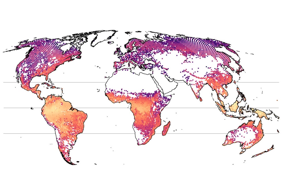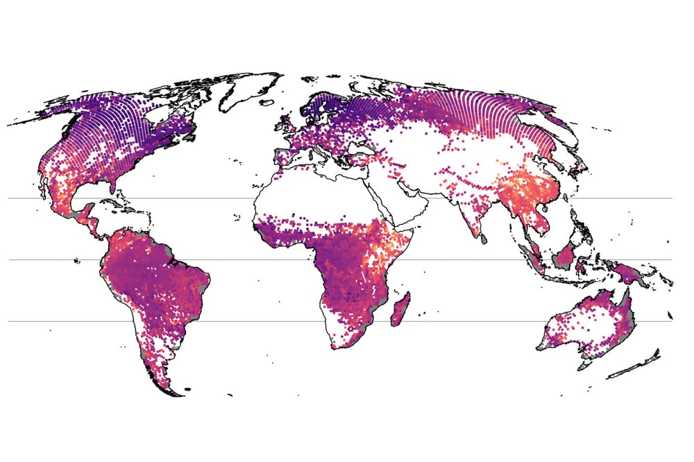 Und das führt zu weiteren Erkenntnissen. Mithilfe der neuen Karte konnten die Forscher nun untersuchen, welche Einflussfaktoren die globale Baumartenvielfalt bestimmen. Das Klima spielt eine zentrale Rolle; zudem hängt die Vielfalt der Arten, die man in einem bestimmten Gebiet feststellt, aber auch von der räumlichen Skala der Betrachtung ab. Dies berichten die Forscher in der Fachzeitschrift Nature Ecology and Evolution. Die neue Methode könnte unter anderem helfen, den weltweiten Artenschutz zu verbessern.