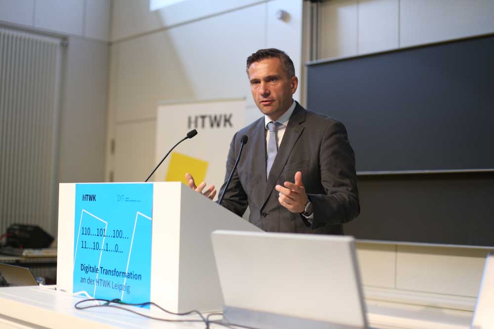 Am Mittwoch, 19. Juni, kam auch Martin Dulig, Sächsischer Staatsminister für Wirtschaft, Arbeit und Verkehr, zur Stiftungsfeier: „Die HTWK Leipzig ist der ideale Standort für eine Fakultät Digitale Transformation. Denn die Digitalisierung betrifft alle Lebensbereiche – auch Technik, Wirtschaft und Kultur. Jetzt geht es darum, diesen Wandel aktiv zu gestalten. Sachsen verfügt heute über herausragende Kompetenzen bei Schlüsseltechnologien der Digitalisierung. Dies ist vor allem der exzellenten Forschungs- und Hochschullandschaft zu verdanken. Ich bin überzeugt, dass die neue Fakultät künftig ein weiter Baustein dafür sein wird. Zu diesem wegweisenden Schritt möchte ich Rektorin Prof. Gesine Grande und ihren Mitstreitern herzlich gratulieren. Der Deutschen Telekom denke ich für die langfristige Finanzierung.“