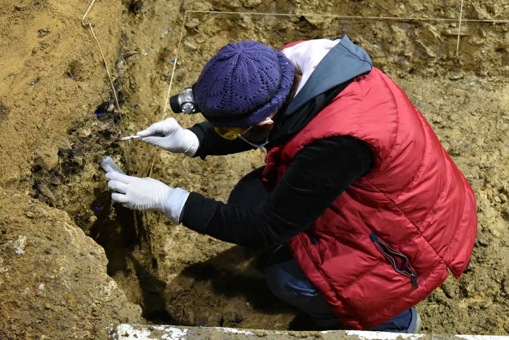 Eine der Grabungsleiterinnen, Tsenka Tsanova aus der Abteilung für Humanevolution am MPI-EVA, entnimmt Sedimentproben für die DNA-Analyse. Foto: Nikolay Zahariev, Lizenz: CC-BY-SA 2.0