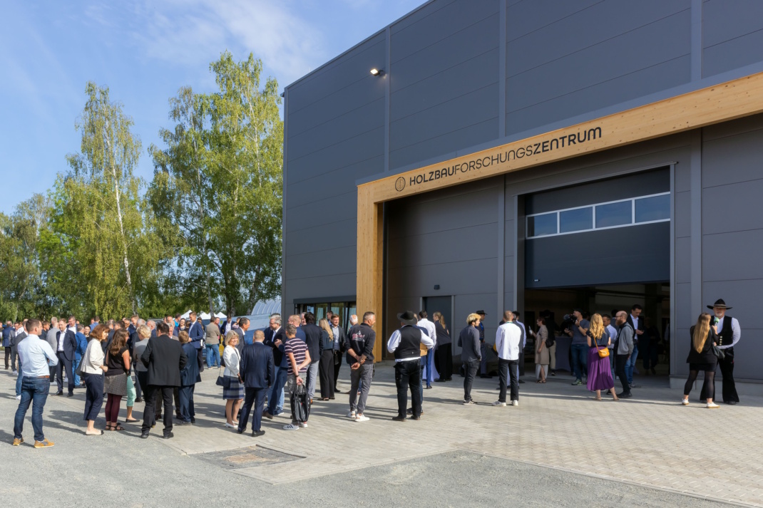 Am Donnerstag, dem 22. August, wurde das HolzBauForschungsZentrum der Hochschule für Technik, Wirtschaft und Kultur Leipzig (HTWK Leipzig) im Innovationspark • Bautechnik • Leipzig/Sachsen im Stadtteil Engelsdorf feierlich eröffnet. Anwesend waren rund 200 Gäste aus Wirtschaft, Politik und Wissenschaft. In der Halle kann die HTWK Leipzig neue Konzepte für materialsparende Lösungen im Maßstab 1:1 auf Anwendungsniveau entwickeln und erproben.