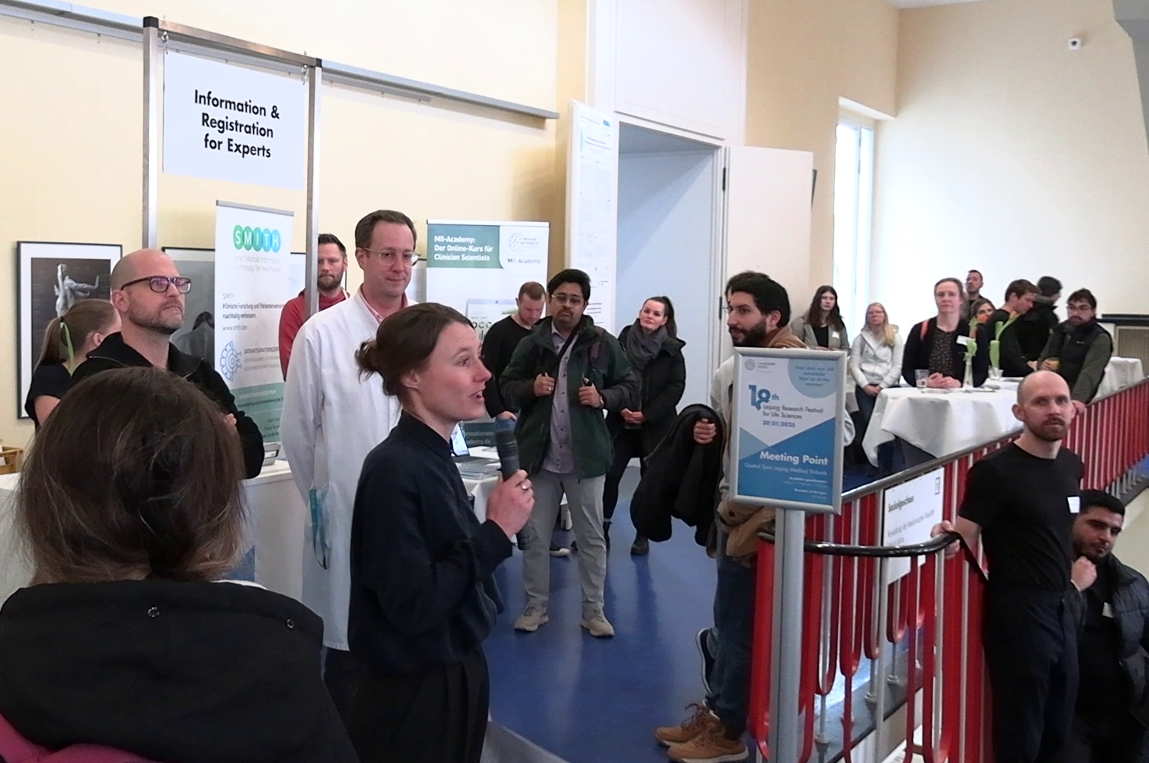 Am Donnerstag, dem 30. Januar, fand das 18. Research Festival for Life Sciences im Studienzentrum der Medizinischen Fakultät der Universität Leipzig statt. 190 Forschende und Forschergruppen präsentierten die Poster zu ihren Arbeiten im Bereich der Lebenswissenschaften und Medizin. Prof. Dr. Ruth Stassart, Forschungsdekanin der medizinischen Fakultät, betonte in ihrer Eröffnungsrede, dass die Themenbreite von Biochemie, Biotechnologie, Biomaterialien bis hin zu Krankheiten wie Zivilisationskrankheiten, Onkologie, Neuroimmologie, Neurowissenschaft, aber auch Psychologie, Kognition und digitale Gesundheit reicht.