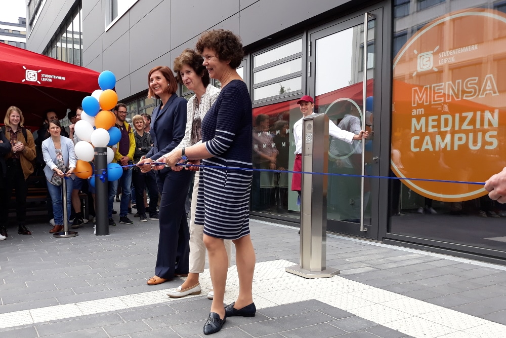 Die sächsische Wissenschaftsministerin Eva-Maria Stange (SPD) stellte für die kommenden Jahre weitere Investitionen in die Infrastruktur der Leipziger Hochschulen in Aussicht, worüber sich auch die ebenfalls anwesende Unirektorin Beate Schücking freute. Diese betonte den praktischen Nutzen der Versorgungseinrichtung, die Studierende der Medizin und Naturwissenschaften an einen (Mensa-)Tisch bringen soll.