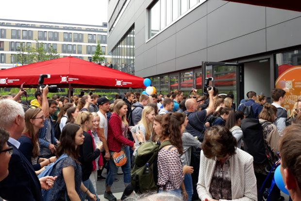 Kurz nach 12 Uhr begrüßte Andrea Diekhof, die Geschäftsführerin des Studentenwerkes, die Anwesenden. Neben zahlreichen Studierenden waren auch mehrere Landtagsabgeordnete zur Eröffnung erschienen. Immerhin hat der Freistaat den Neubau mit etwa 25 Millionen Euro finanziert. „Auf diesen Tag haben wir lange gewartet“, sagte Diekhof. Sie dankte allen, die darauf hingearbeitet haben, unter anderem den Mitarbeitern der neuen Mensa, die in den vergangenen Wochen einen „Vorbereitungsmarathon“ absolviert hätten.