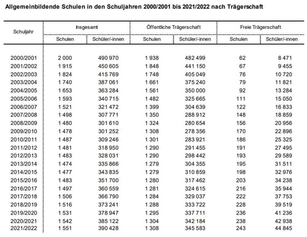 Außerdem stiegen an den Freien Waldorfschulen die Schülerzahlen um 9,1 Prozent. An den Gemeinschaftsschulen, die erstmals für das aktuelle Schuljahr erfasst wurden, lernen 51 Schülerinnen und Schüler an Schulen in freier Trägerschaft.