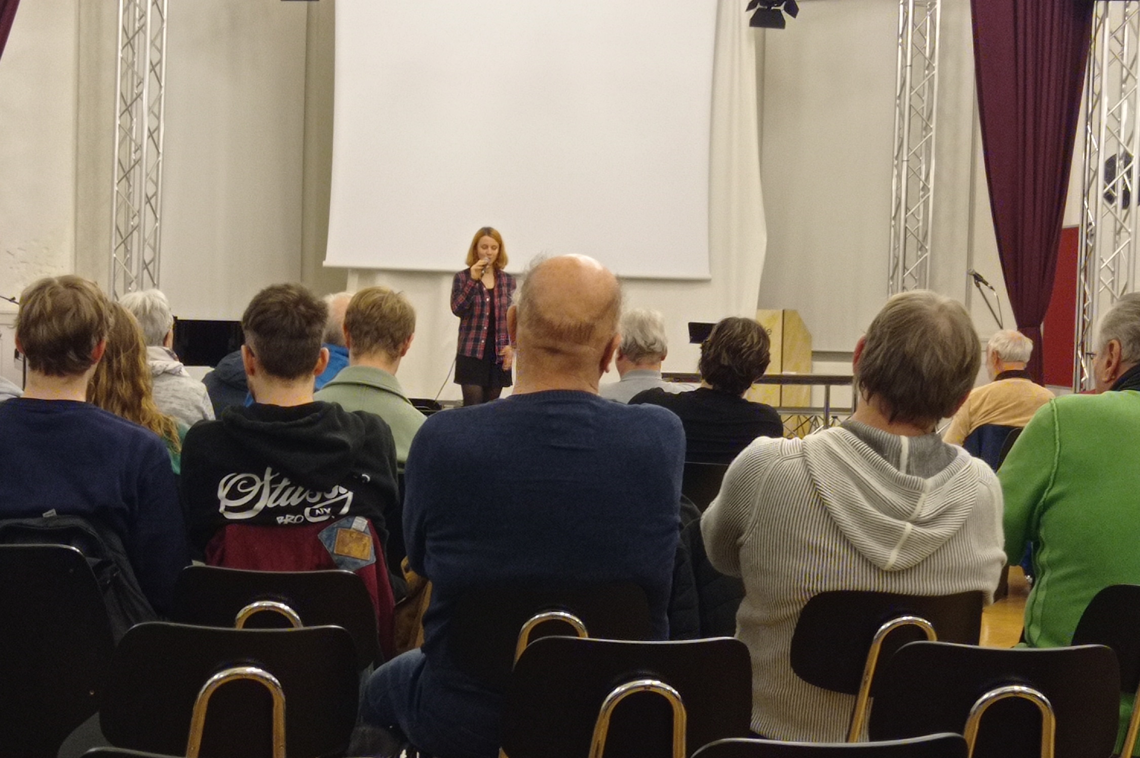 Am 6. Januar 2023 lud der Förderverein nun wieder zum Absolvententreffen ein und es kamen doch, nach meiner Schätzung, etwa 100 Ehemalige. Die Absolventin des Leibniz-Gymnasiums, Musikerin und Studentin der Musik, Nora Lyn Handschuh, gestaltete ein vielfältiges Programm und fand wahrscheinlich neue Fans.