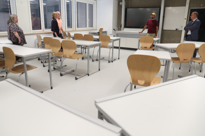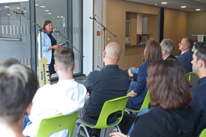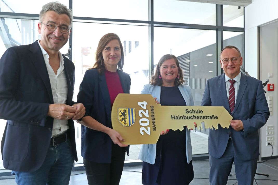 Schulbürgermeisterin Vicki Felthaus und Baubürgermeister Thomas Dienberg haben am Montag, 19. August, die Oberschule Hainbuchenstraße in Paunsdorf nach der rund vierjährigen Sanierung und Erweiterung feierlich eröffnet. Die ehemals zweizügige Heinrich-Heine-Schule ist für rund 19 Millionen Euro zu einer modernen dreizügigen Oberschule erweitert worden. Sie bietet nun für bis zu 532 Schülerinnen und Schüler inklusive einer DAZ-Klasse (Deutsch als Zweitsprache) einen Platz zum Lernen.