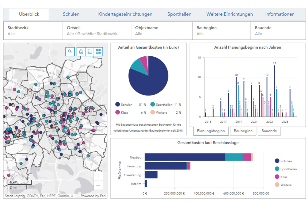 Jugendbürgermeisterin Vicki Felthaus sagt dazu: „Das Dashboard wurde für Leipzigerinnen und Leipziger entwickelt, um zu zeigen, wie viel, wann und mit welchem finanziellen Aufwand im gesamten Stadtgebiet Leipzigs in Bildungsinfrastruktur investiert wird.“