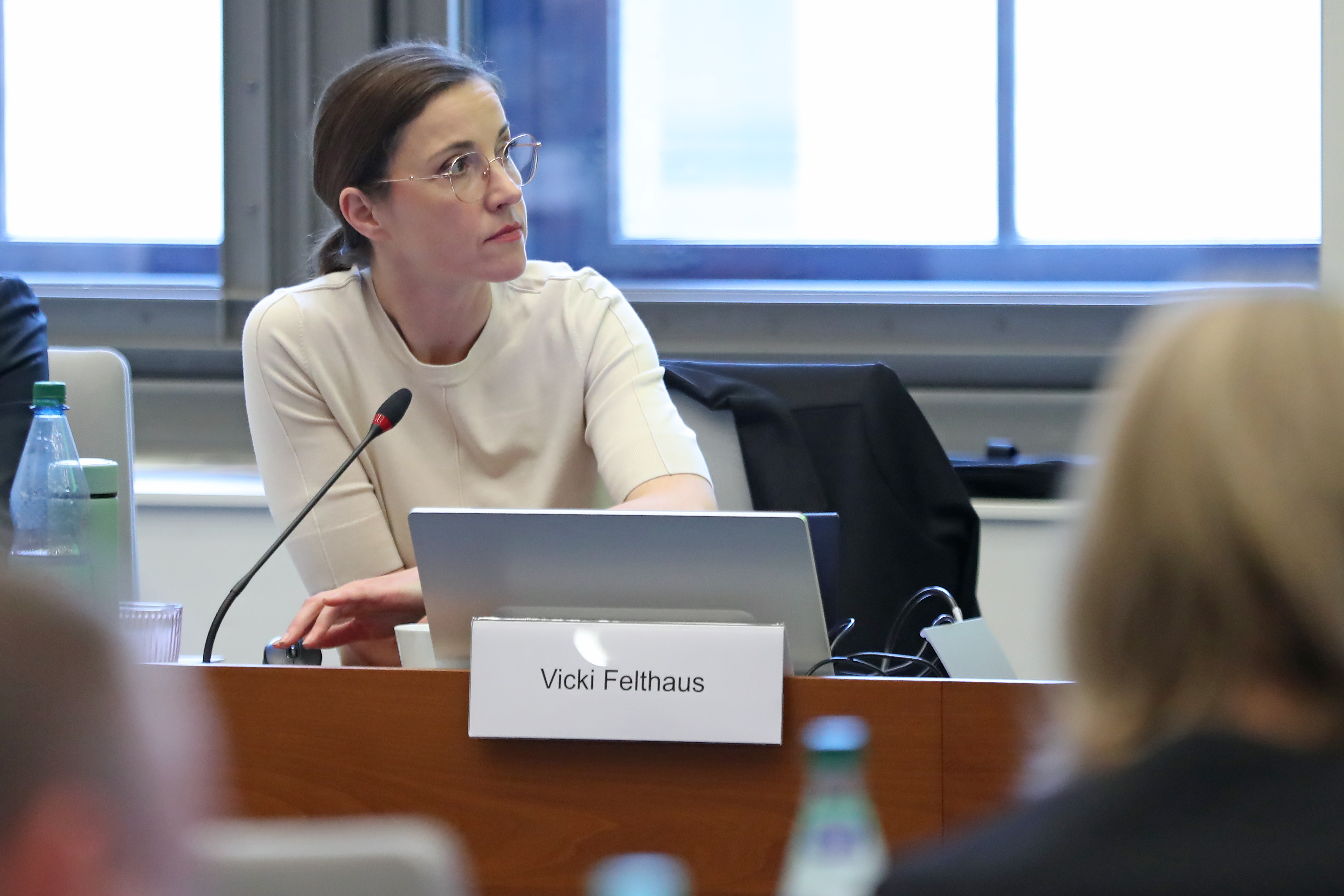 Frau Vicki Felthaus (Bündnis 90/Die Grünen), Beigeordnete für Jugend, Schule und Demokratie, im Leipziger Stadtrat am 16.04.25. Foto: Jan Kaefer
