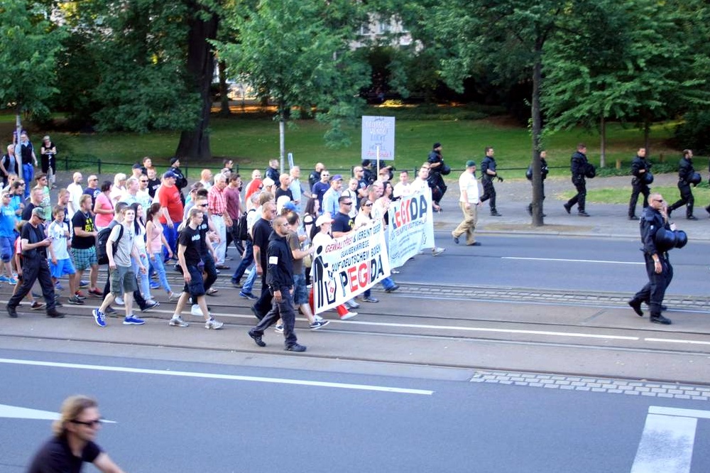 Polizeiliche Pressemitteilung zum Versammlungsgeschehen LEGIDA am 3. August 2015: “Am 3. August 2015 fand zum 15. Male eine Legida Versammlung mit Aufzug statt. Die Strecke führte vom Richard-Wagner-Platz über den Innenstadtring bis zum Martin-Luther-Ring/Ecke Lotterstraße und von dort wieder zurück zum Ausgangsort. Durch die Teilnehmer des Gegenprotestes wurden insgesamt vier Gegenveranstaltungen angemeldet.