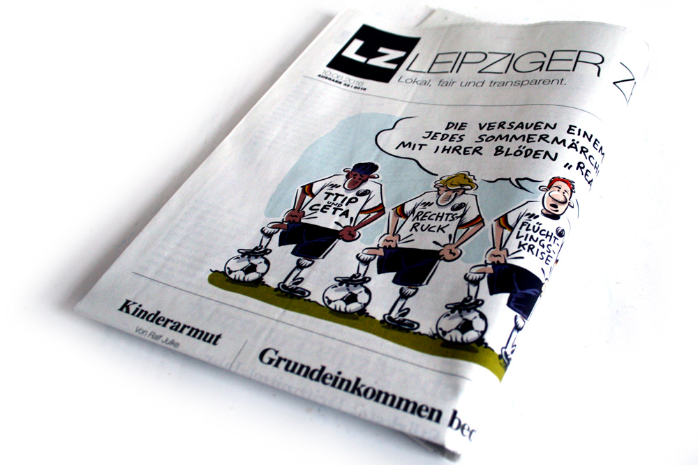 Ab heute liegt sie wieder an allen Verkaufsstellen: die neue „Leipziger Zeitung“. Diesmal - naja - mit verwirrten Fußballern auf dem Titelbild. Passend zur Zeit. Denn auch wenn jetzt wieder eine ganze Republik versinkt in Volkes Spielen: Die ungeklärten Themen der Gegenwart gären weiter, liegen unerledigt herum auf den Straßen. Und auf einmal schleicht sich ein Wort in unsere Zeitung: Wut. Ganz beiläufig. Und es gibt jede Menge Gründe, richtig wütend zu sein.