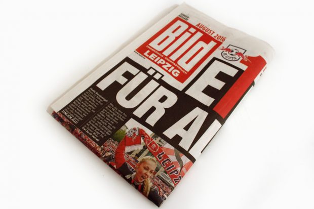 Oder ein Flying Paperman. Ist auch egal. Es passte wie der Gummibär zur Goldlocke, der Kapitän zum Fischstäbchen. Oder der Wolf zum Rotkäppchen. 330.000 für gratis hingeschmissene Werbe-Zeitungen für Leipzigs Fußball-Zirkus-Vorzeigeverein hat der Springer-Konzern produziert. Das ist der, der so gern gegen Facebook klagt, obwohl er eigentlich nix anderes macht: Werbung verkaufen mit bunten Bildchen drumherum und Texthäppchen für Leute, die auf geistige Diät gesetzt sind.