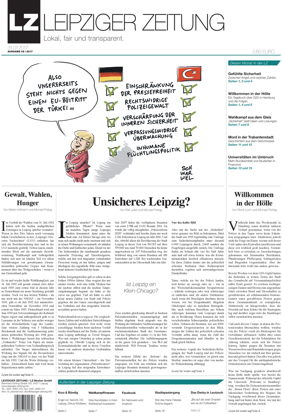 Ferien vorbei? Die Kinder müssen wieder was lernen? Was tun mit dem Schock der Rückkehr in die Realität? „Leipziger Zeitung“ lesen. Wir haben sie extra ein bisschen später herausgebracht, damit sie nicht im „Sommerloch“ verschwindet. Denn bekanntlich kehrte ja nach den Krawallen in Hamburg Totenstille ein im Land. Hummelsummen, Wiesengebrutzel, sogar die Vögel hörte man zwitschern. Aber René Loch war in Hamburg dabei.
