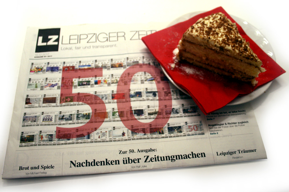 Beides eingeordnet in unsere Beschäftigung mit der Frage: Was könnte Zeitung eigentlich leisten in der Gegenwart? „Nachdenken über Zeitungmachen“ heißt es also gleich zum Start und setzt sich thematisch mit „Kleine Jubiläen“ (auf Seite 3) und der Zukunft des Journalistik-Lehrstuhls an der Uni Leipzig („Journalisten kooperieren mit Informatikern“) fort.