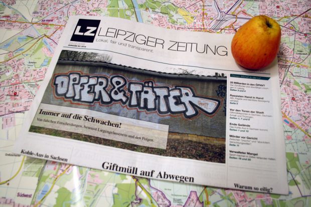 Also: Briefkasten aufmachen am Freitag, den 23.02.2018, Zeit nehmen und auf geht’s. Oder kaufen gehen: Denn die neue „Leipziger Zeitung“ gibt es jetzt wieder da, wo man noch gute Zeitungen kaufen kann – mit Timmi Transport sind die ersten Exemplare schon heute Abend mit dem Fahrrad unterwegs.
