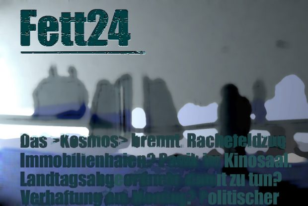 Und natürlich war es nicht der ehrenwerte Herr Abgeordnete. Der hatte wohl nur – vielleicht ein, zwei Stunden nachdem der Brand bemerkt worden war und die Feuerwehr noch vergeblich gegen das Abbrennen des alten Kinos kämpfte – selbst die Polizei verständigt, dass zwei dubiose Gestalten in seiner Villa aufgetaucht waren, die er für Einbrecher halten musste, die aber nichts wollten, sich auch nicht vertreiben ließen, als der Abgeordnete damit drohte, sie mit seiner Jagdflinte (O ja, er war ein begeisterter Jäger von Schweinen, Rehen und Hirschen …) über den Acker zu treiben, im Gegenteil, sogar handgreiflich wurden, sodass sich der völlig derangierte Abgeordnete und seine Begleiterin in einem Bad verbarrikadieren mussten, zum Glück das Taschentelefon dabei, sodass die Polizei sehr schnell vor Ort war, die Villa absperrte und ein stundenlanger Nervenkrieg begann, der erst endete, kurz bevor einer der überreizten Beamten Herrn L. aus dem Bett klingelte.