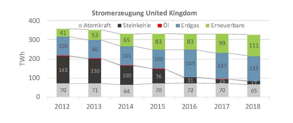 Damit hat in diesem Zeitraum (2012 bis 2018) Großbritannien den mit Abstand größten nationalen Beitrag (44 zur Emissionsminderung aller Anlagen beigetragen, die im europäischen Emissionshandel erfasst sind. Hauptgrund hierfür ist die Einführung eines CO2Â-Mindestpreises (Carbon Price Floor) in UK auf die fossilen Energieträger zur Stromerzeugung.