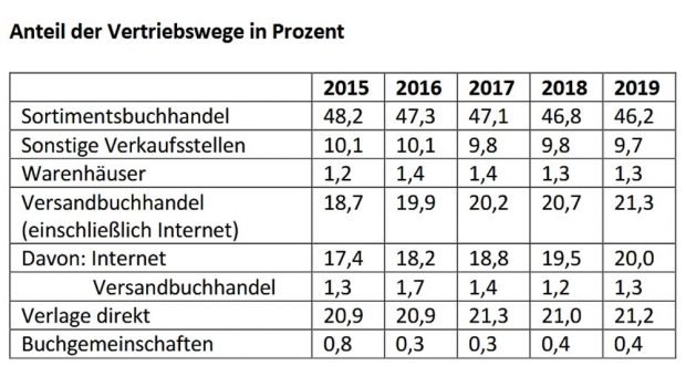 Was dann zum Beispiel zum Ergebnis hat, dass die Verlage über ihren eigenen Shop heute 21 Prozent der deutschen Buchumsätze abwickeln, auch wenn der bekannte Internet-Riese seinen Anteil immer weiter ausbaut und 20 Prozent erreicht hat im letzten Jahr.