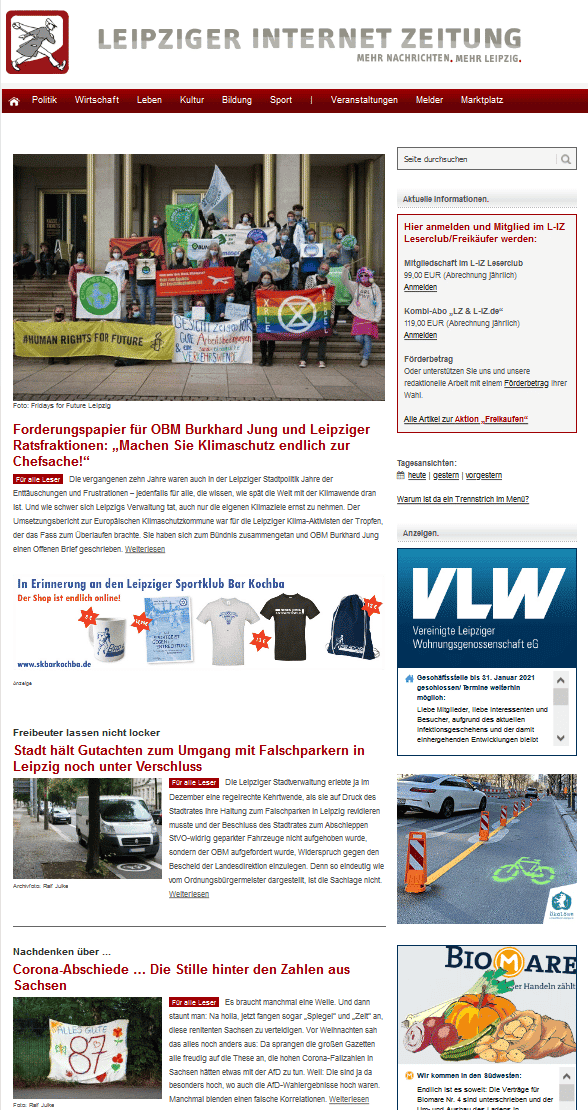 Unterstützen Sie lokalen/regionalen Journalismus und so unsere tägliche Arbeit vor Ort in Leipzig. Mit dem Abschluss eines Freikäufer-Abonnements (zur Abonnentenseite) sichern Sie den täglichen, frei verfügbaren Zugang zu wichtigen Informationen in Leipzig und unsere Arbeit für Sie.