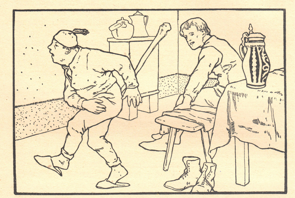 Grimm-Illustration von Otto Ubbelohde: Knüppel aus dem Sack. Repro: Museum Brüder-Grimm-Haus in Steinau an der Straße