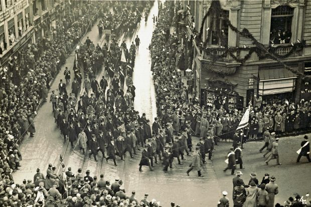 Ab und zu zieht, wie 1925 vor großem Publikum, ein Veteranenverbund zum 1. „Reichskriegertag“ durch die Hainstraße, man gedenkt reichlich militärisch angehaucht der Toten aus immer ferner werdenden Tagen der Jahre 1871 bis 1918. Der Kaiser steckt noch in den Knochen, die Demokratie wird eher als schwächlich belächelt. Und es sind nur noch zweieinhalb Jahre bis zum „Schwarzen Freitag“ am 24. Oktober 1929 und dem nachfolgendem, weltweiten Wirtschaftsabsturz.