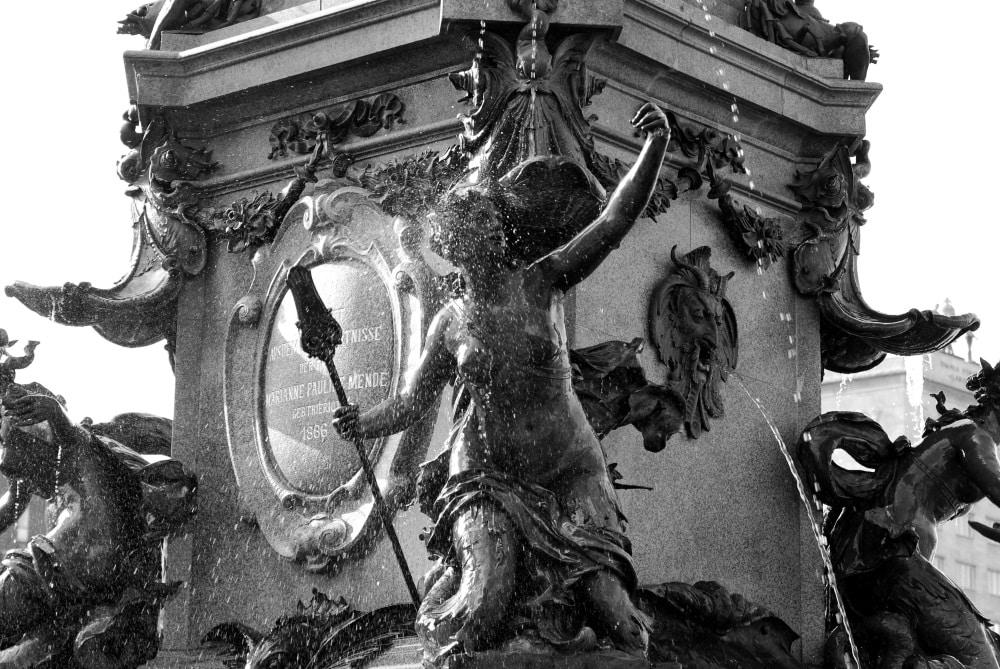 Es scheint sich hier offenbar um die Milchtöpfe des frühen 20. Jahrhunderts zu handeln. Aber Dr. Fr. ist noch nicht fertig mit seinem Forderungskatalog wider des schlechten Geschmacks für den Krieg. „Das gleiche Schicksal kann man wohl auch den schwülstigen Figuren am Mendebrunnen wünschen. Es ergäbe sich dabei für unsere Künstler die dankbare Aufgabe, zu Unterbau und Spitzsäule des Brunnens später eine neue figürliche Ausgestaltung zu entwerfen.“