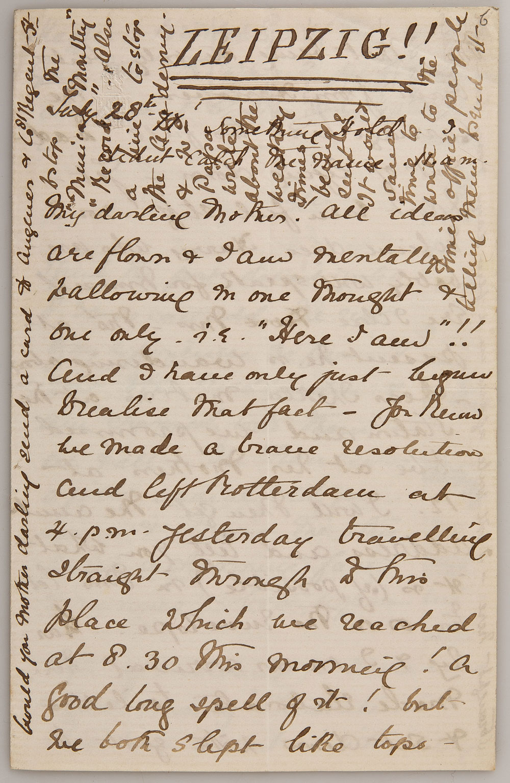 Ethel Smyth (1858-1944) kam 1877 nach Leipzig, um am hiesigen Konservatorium ein Musikstudium aufzunehmen. „Leipzig!!! … HERE I AM“, überschrieb sie einen der ersten von über 50 Briefen aus dieser Zeit an ihre Mutter. In den Briefen berichtet sie eindrücklich von den im Alltag spürbaren kulturellen Unterschieden zu ihrer Heimat, der Ausbildung am Leipziger Konservatorium und auch von ihren vielfältigen Aktivitäten und Begegnungen im gesellschaftlichen Leben Leipzigs.