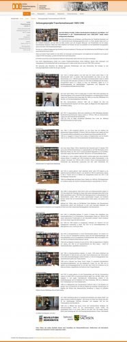 Im Jahr 2020 führte das Archiv Bürgerbewegung Leipzig e. V. (ABL) mit Akteuren und Akteurinnen der Friedlichen Revolution und der sich anschließenden Transformationszeit ab 1989/1990 audiovisuelle Zeitzeugengespräche durch. Im Fokus standen dabei nicht nur die Friedliche Revolution und das Ende der DDR, sondern auch die errungene Meinungs- und Pressefreiheit sowie der Aufbau demokratischer Strukturen. Neben den vielen Initiativen und Parteien, die sich 1989 und 1990 neu gründeten, um die Gesellschaft mitzugestalten, erfolgten in diesem Zeitraum auch mehr als 100 Zeitungsneugründungen.