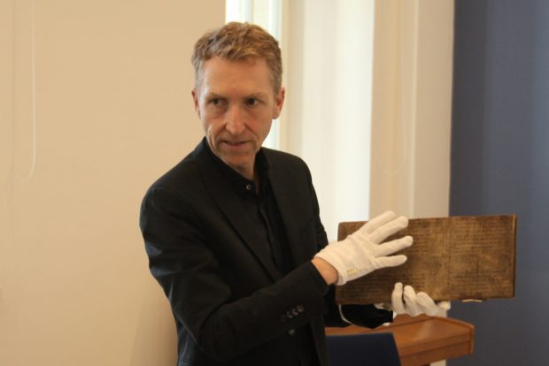Und Dr. Christoph Mackert ist Experte auf dem Gebiet der alten Handschriften und hat auch an der Uni-Bibliothek schon etliche solcher Funde machen können, als man dort begann, die alten Einbände der gesammelten Bücher genauer unter die Lupe zu nehmen. Denn – wie er so schön sagt – die komplett erhaltenen mittelalterlichen Handschriften sind selten. Aber Fragmente gibt es jede Menge. Eigentlich eine Katastrophe.